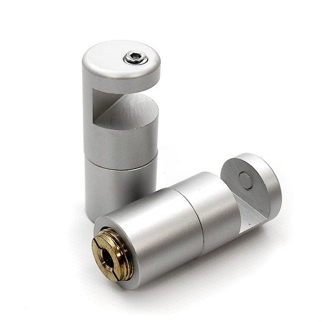 The WGS2048-10mm AL edge-grip standoff support/panel gripper features a 20mm (3/4″) diameter round profile fitting, designed for wall mounting signs and panels up to 8-10mm (5/16″-3/8″) thick. It is ideal for supporting small to medium size signage or decorative paneling. Spacing from the wall is 32mm (1-1/4″). Nylon-tipped grub screws securely fasten the panels and protect the surfaces from damage.