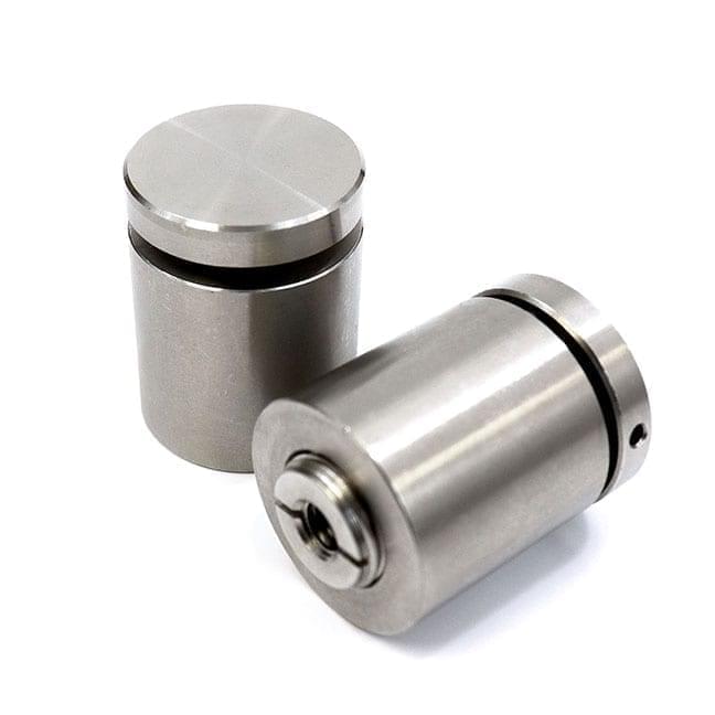 Our range of sign standoffs includes multiple diameters, sizes, and finishes, such as clear anodized, black anodized, satin chrome, polished chrome, brushed nickel, and stainless steel. Standoffs are available in 12mm (1/8″), 16mm (5/8″), 20mm (3/4″), 25mm (1″), 32mm (1-1/4″), and 38mm (1-1/2″) diameters. To explore our entire selection of sign standoffs and panel fittings, crafted exclusively from premium-grade aluminum, brass, or stainless steel, click on the link below.