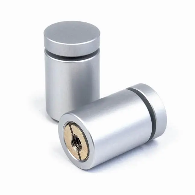 Our range of sign standoffs includes multiple diameters, sizes, and finishes, such as clear anodized, black anodized, satin chrome, polished chrome, brushed nickel, and stainless steel. Standoffs are available in 12mm (1/8″), 16mm (5/8″), 20mm (3/4″), 25mm (1″), 32mm (1-1/4″), and 38mm (1-1/2″) diameters. To explore our entire selection of sign standoffs and panel fittings, crafted exclusively from premium-grade aluminum, brass, or stainless steel, click on the link below.