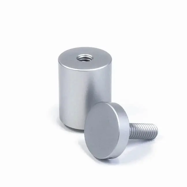 3/4″ Dia. x 1″ Sign Standoff Support (3-Part Standoff with M6 Stud-Cap) / Satin Clear Anodized Aluminum Finish