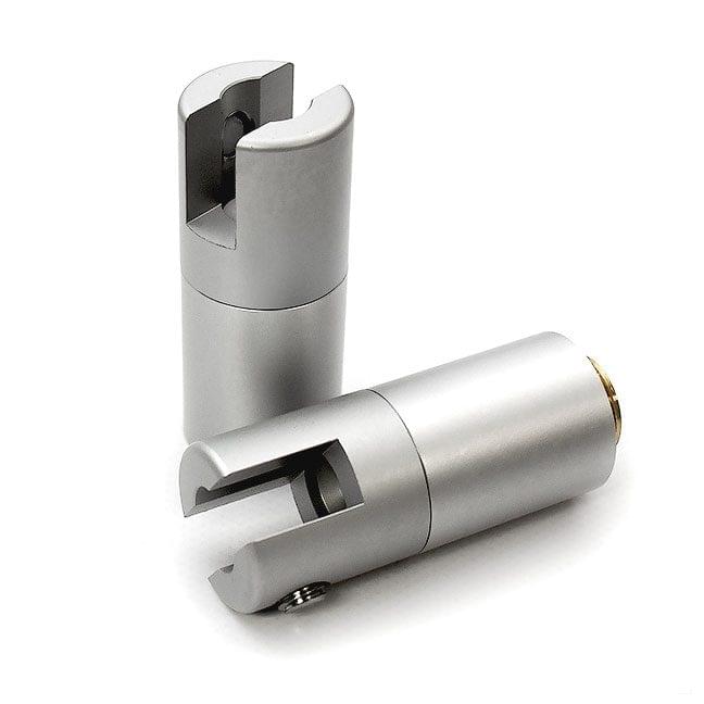 These are solid, durable aluminum standoff supports machined using high-grade aluminum and supplied with a quality satin clear anodized finish. The fittings are modular and can be used with other interchangeable components such as threaded caps to create projecting fork panel supports with screw caps.