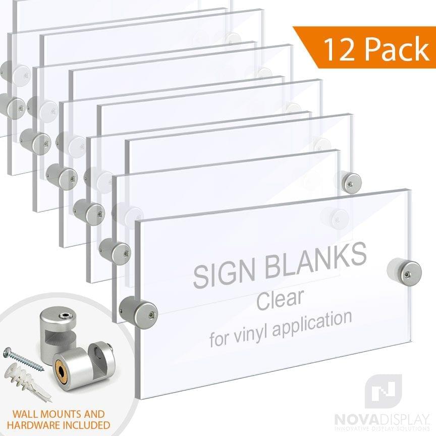 Wall Mounted Acrylic Sign Blanks – set of 1/4″ Clear Acrylic Blanks with Laser-Cut Polished Edges / Miter Corners. Wall mounts and hardware are included. Use for Vinyl Applications or Etching / 12 PCS BUNDLE