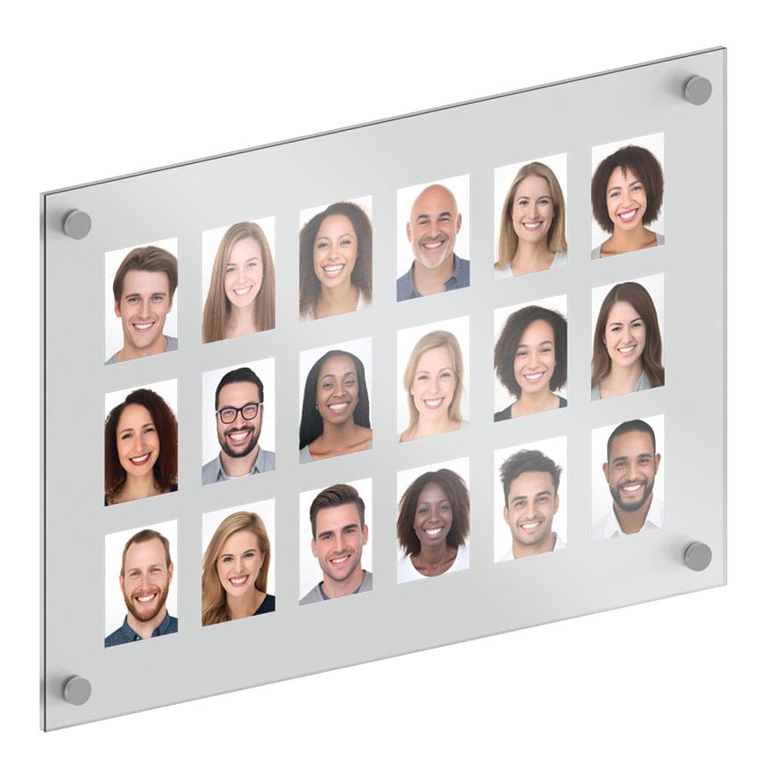 FINISHES: Mounting hardware is supplied in satin clear, satin black, or stainless steel finishes. The acrylic backboard is made of 1/4″ thick acrylic and is available in a few finish options, such as clear, frost matte, white matte, or black matte. The acrylic front cover is made of quality 1/8″ thick non-glare (non-reflective) acrylic.