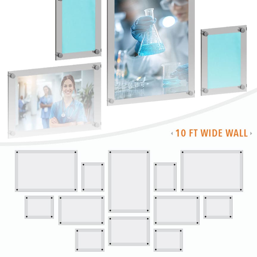 FINISHES: Mounting Hardware is supplied in a satin chrome finish. Acrylic literature holders and frames are made of high-quality 1/4″ thick clear and 1/8″ thick clear/non-glare acrylic.