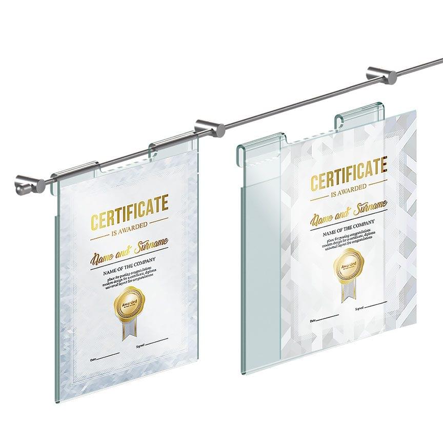 FINISHES: Mounting Hardware is supplied in a satin chrome finish. Acrylic holders are made of high-quality 1/8″ thick clear or non-glare acrylic.